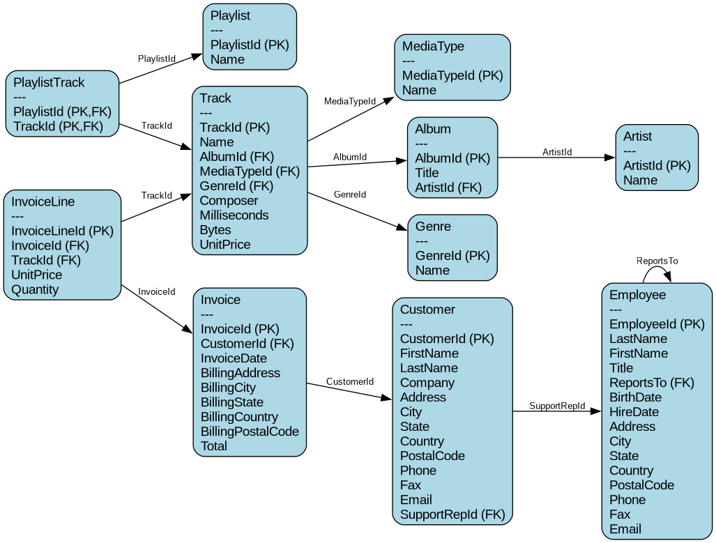 En este curso haremos uso de una base de datos ya preparada que simula una discográfica. Ahora descarga el archivo de Chinook. También puedes ver el esquema de relaciones de la base de datos. Una vez esté en tu poder pulsa Open Database y busca el archivo.